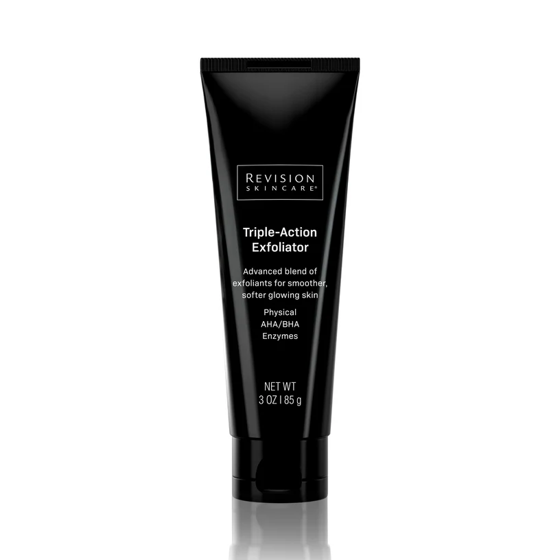 Triple-Action Exfoliator is an advanced formula that targets dullness, uneven texture, and buildup with a triple-action approach to exfoliation. It combines physical exfoliants, chemical exfoliants (Salicylic Acid, Lactic Acid, and Glycolic Acid), and pomegranate enzymes to gently remove dead skin cells and impurities while brightening the complexion. A hydrating and postbiotic complex supports the skin’s microbiome, leaving it soft, smooth, and glowing.